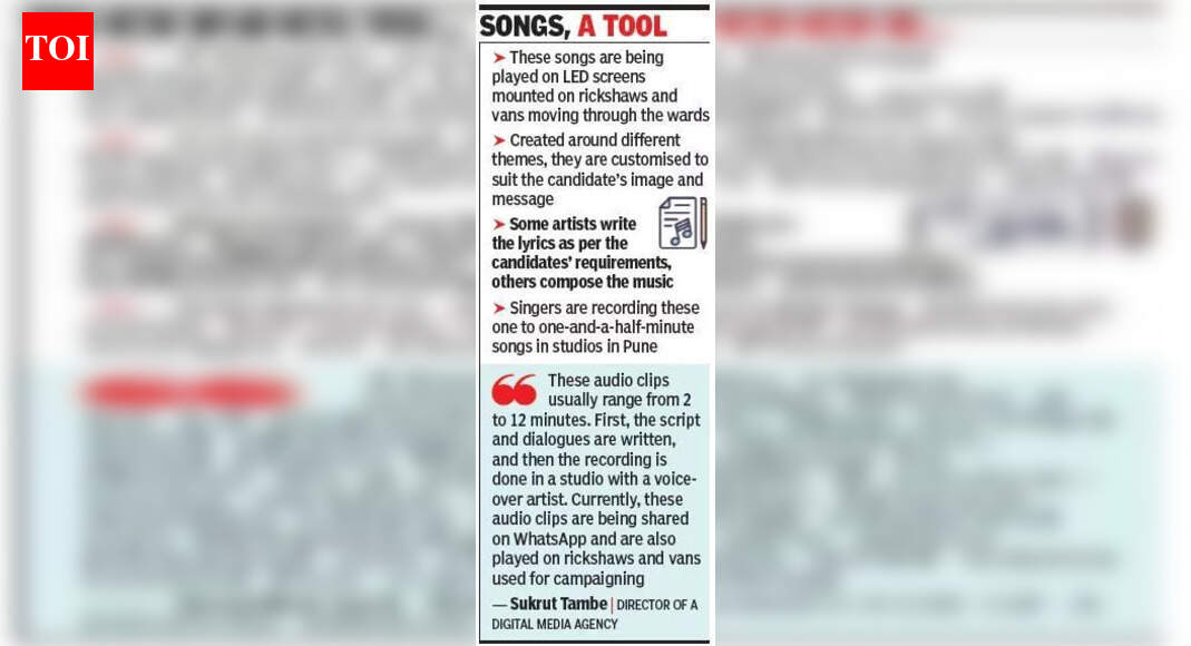 निवडणूक प्रचारासाठी लघुपट आणि पथनाट्याची निर्मिती करणारे तेजस साठे म्हणाले, “आमच्याकडे पुण्यातील १३ क्लायंट आहेत ज्यांच्यासाठी आम्ही दोन महिन्यांपूर्वी निर्मिती सुरू केली. व्हॉईस कॉल्स आणि सोशल मीडिया रील्ससाठी कल्पना तयार करण्यात आल्या होत्या, ज्यांना आमच्या क्लायंटनी मान्यता दिली होती, जे मूलत: निवडणूक लढवणारे उमेदवार आहेत आणि नंतर त्यांची अंमलबजावणी करण्यात आली. अधिकृत यादी जाहीर झाल्यानंतर, आम्ही सर्व प्लॅटफॉर्मवर सर्व व्हिडिओ आणि ऑडिओ रिलीझ करण्यास सुरुवात केली.“सर्व प्रभागांमध्ये प्रचाराला वेग आला असताना, उमेदवारांनी व्यापक प्रचार कार्यक्रम सुरू केला आहे. लोक कलाकार, नाट्य व्यावसायिक, निवेदक, गायक आणि संगीतकार मोहिमेशी संबंधित असाइनमेंटमध्ये पूर्णपणे गुंतलेले आहेत. या कामात केवळ पुण्यातीलच नव्हे तर महाराष्ट्रातील कलाकारांचा सहभाग आहे. ग्रामीण भागातील कलाकारांना संधी मिळत आहे, मग ते त्यांचा आवाज ऑडिओ क्लिपला देत आहेत किंवा प्रचार गाणी गाणे.पार्श्वगायक ब्रिजेश राठोड म्हणाले, “मी आतापर्यंत उमेदवारांसाठी काम आऊटसोर्स करणाऱ्या एजन्सींसाठी २८ जिंगल्स गायल्या आहेत. हा एक चांगला अनुभव होता, त्यामुळे मी प्रचारासाठी चांगली वैविध्यपूर्ण गाणी दिली आणि आता मला विविध मीडिया प्लॅटफॉर्मवर माझे स्वतःचे काम ऐकायला मिळत आहे.”कलाकार रिद्धी कुलकर्णी म्हणाली की ती सर्व प्रकारच्या प्रचार प्रसार माध्यमांसाठी तिचा आवाज देत आहे. “ऑडिओ क्लिपसह, मी माहितीपटांसाठी व्हॉईस-ओव्हर देखील करत आहे. उमेदवारांना प्रचारासाठी बनवलेले 2 ते 3 मिनिटांचे माहितीपट मिळत आहेत, ज्यात उमेदवाराची माहिती आणि त्यांनी केलेल्या विकासकामांचा तपशील समाविष्ट आहे,” ती म्हणाली.गाणी, एक साधन प्रभागातून फिरणाऱ्या रिक्षा आणि व्हॅनवर लावलेल्या एलईडी स्क्रीनवर ही गाणी वाजवली जात आहेत.वेगवेगळ्या थीमवर तयार केलेले, ते उमेदवाराच्या प्रतिमा आणि संदेशानुसार सानुकूलित केले जातातकाही कलाकार उमेदवारांच्या गरजेनुसार गीत लिहितात, तर काही संगीतकार करतात पुण्यातील स्टुडिओमध्ये गायक ही एक ते दीड मिनिटांची गाणी रेकॉर्ड करत आहेतया ऑडिओ क्लिप सहसा 2 ते 12 मिनिटांपर्यंत असतात. प्रथम, स्क्रिप्ट आणि संवाद लिहिले जातात आणि नंतर रेकॉर्डिंग एका स्टुडिओमध्ये व्हॉईस-ओव्हर कलाकारासह केले जाते. सध्या या ऑडिओ क्लिप व्हॉट्सॲपवर शेअर केल्या जात असून प्रचारासाठी वापरल्या जाणाऱ्या रिक्षा आणि व्हॅनवरही त्या चालवल्या जात आहेत.सुकृत तांबे I डिजिटल मीडिया एजन्सीचे संचालक