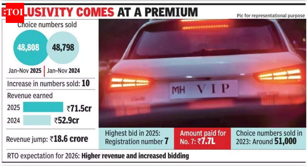 पुणे: एक मनोरंजक ट्विस्टमध्ये, लोकांच्या पसंतीचे नोंदणी क्रमांक खरेदी करण्याच्या उत्सुकतेत अत्यल्प घट झाली असली तरी, नंबर प्लेटला शोभेल अशा अंकांसाठी बोली स्पष्टपणे जास्त होती